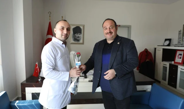 Beraberindekilerle birlikte daha sonra 112 Acil Sağlık Hizmetleri çalışanlarını ziyaret eden ekinci, burada görevli personellerin de 14 Mart Tıp Bayramını kutladı.