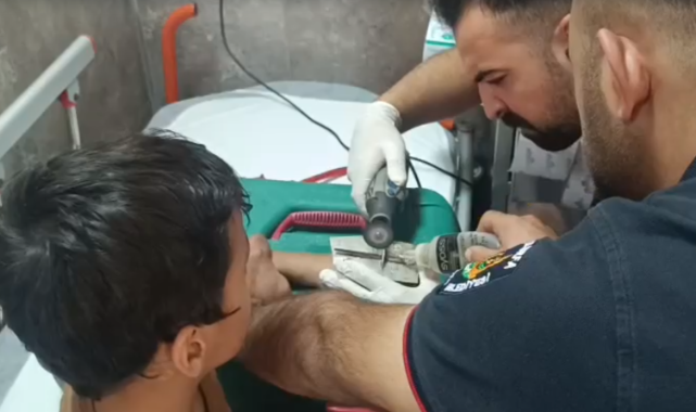 Hastaneye gelen itfaiye ekipleri, yaklaşık 10 dakikalık çalışmanın ardından pulu keserek çocuğun parmağından çıkardı.