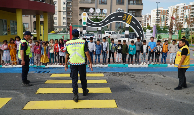 Şanlıurfa Valiliği koordinesinde Haliliye Belediyesi, İl Emniyet Müdürlüğü ve İl Milli Eğitim Müdürlüğü işbirliğinde eğitimlerin verildiği Çocuk Trafik Eğitim Parkında miniklere trafik bilinci aşılanıyor.