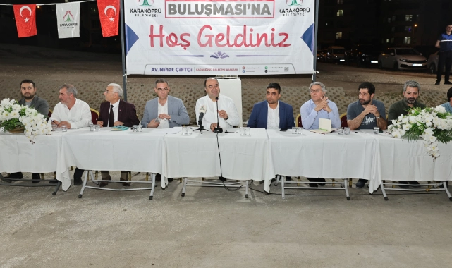 Hizmeti şiar edinen bir ekip olduklarını ve tek amaçlarının ilçeye hizmet olduğunu ifade eden Başkan Nihat Çiftçi, “Halk buluşmaları kapsamında sizlerle bir araya gelmek, sizin fikrinizi almak ve taleplerinizi duymak istedik. Buraya sizi dinlemeye geldik ve sizin vereceğiniz fikirler, talepleriniz bize hizmet noktasında yön verecek. Karaköprü’de yeni bir çalışma dönemi başladı ve bu yaz yine çok yoğun geçecek.