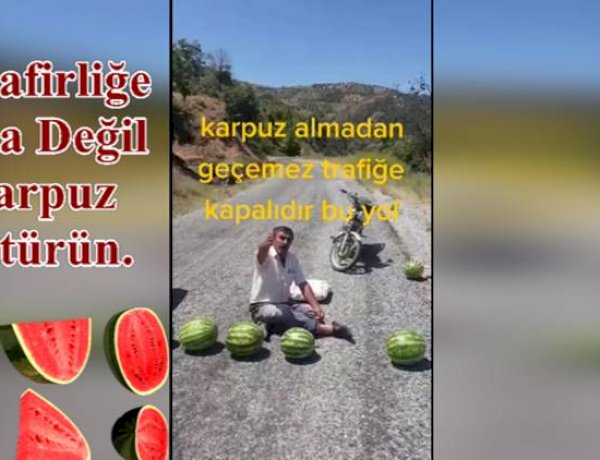 Tezgahındaki karpuzları satmak için yoldan geçen vatandaşlara hitaben "Karpuz almayan bu yoldan geçemez" diyerek karpuzları yola dizerek yolun ortasına oturan adam "siz misafirliğe giderken Amerikan kolası alıyorsunuz almayın kardeşim karpuz alın hem esnaf hemde çiftçi kazansın" diyerek tepkisini dile getirdi. Konuşmasının devamında "Patates 10 Lira olduğu zaman bas bas bağırıyordunuz şimdi de karpuzun fiyatı ucuzladı çiftçi bas bas bağırıyor çiftçiye destek olun kardeşim" diyerek haklı talebini dile getirdi.