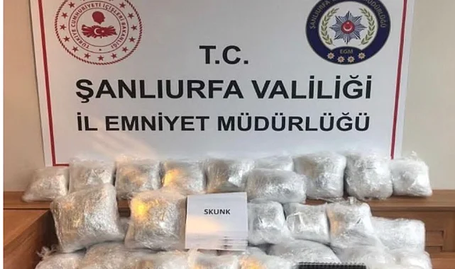 Şanlıurfa'da düzenlenen uyuşturucu operasyonunda, 20 kilo 200 gram skunk ile 800 gram esrar ele geçirildi, 1 şüpheli gözaltına alındı.