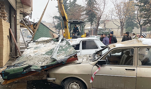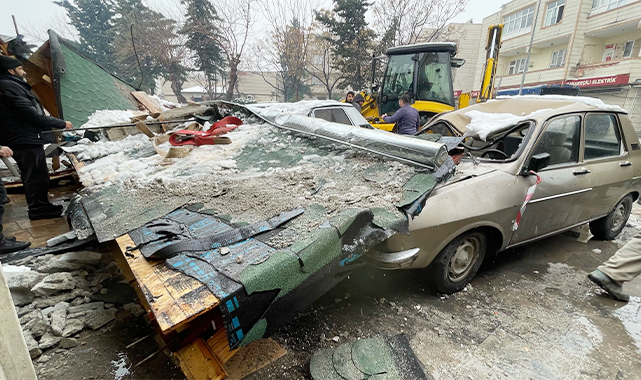 Tentenin çökmesiyle altında park halinde bulunan 3 araçta ağır hasar oluştu. Tente iş makinesi yardımıyla kaldırıldı.