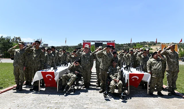 Valilikten yapılan açıklamaya göre, 20'nci Zırhlı Tugay Komutanlığı tören alanında gerçekleştirilen programa aileleriyle gelen 36 engelli genç, yemin ederek temsili askerlik yaptı.