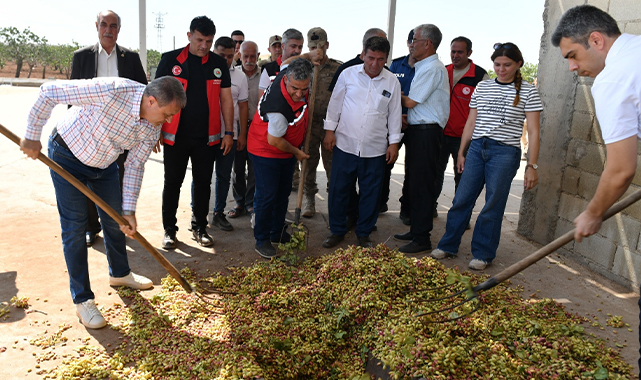 Valilikten yapılan açıklamaya göre, Vali Şıldak, Bozova ilçesine bağlı Çakmaklı Mahallesi'nde işçileri ziyaret ederek fıstığın ilk ürünü olan boz fıstık hasadına katıldı.