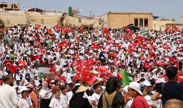 Türkiye Gençlik Vakfı (TÜGVA) tarafından organize edilen etkinlikte Tarihi Balıklıgöl yerleşkesindeki Dergah Camisi'nde, bir araya gelen çocuklar, öğlen namazı sonrası ellerinde Türk ve Filistin bayraklarıyla bölgedeki amfi alanına kadar yürüdü. Çocuklar Gazze'de yaşananlara dikkati çekmek için çeşitli sloganlar attı.