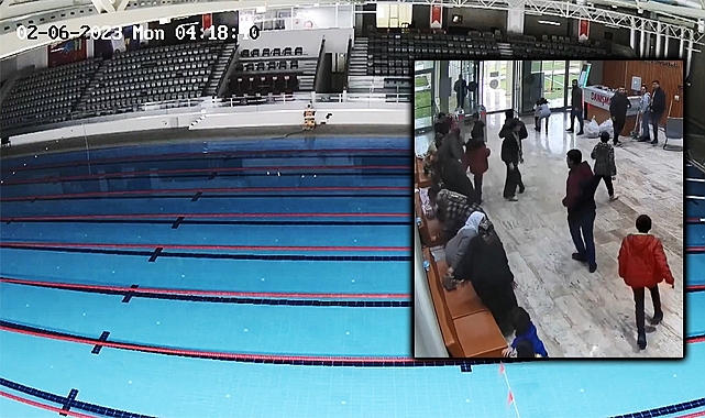 Kent merkezinde bulunan olimpik yüzme havuzundaki güvenlik kamerası, 6 Şubat'ta Kahramanmaraş merkezli depremlerde yaşananları an be an kaydetti.