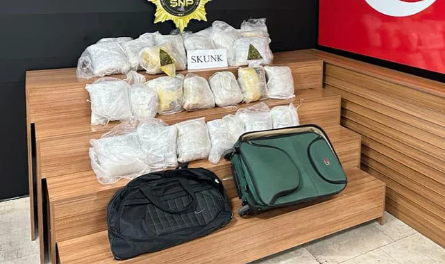 Araçlarda yapılan aramada, 17 kilo 600 gram skunk ele geçirildi.