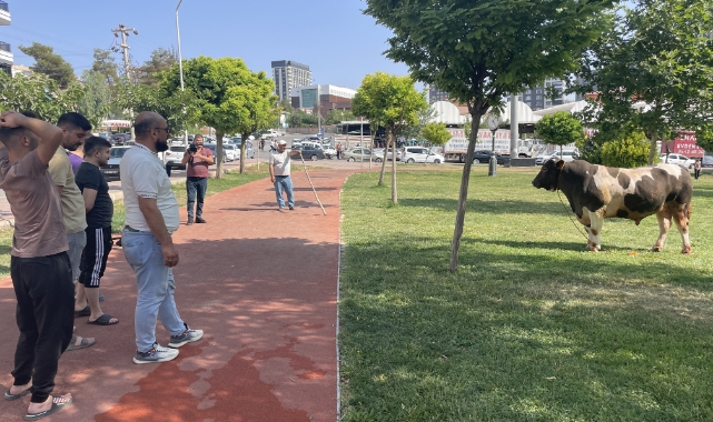 Ekipler, kaçan boğayı parkın içerisinde iğneyle uyuşturduktan sonra sahiplerine teslim etti.