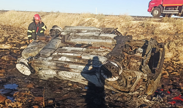 Kaza sonrası otomobilde çıkan yangın, itfaiye ekiplerince söndürüldü. Otomobil, kullanılamaz hale geldi.