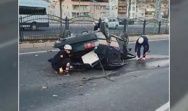 Kazada yaralanan iki kişi, takla atan araçta sıkıştı.