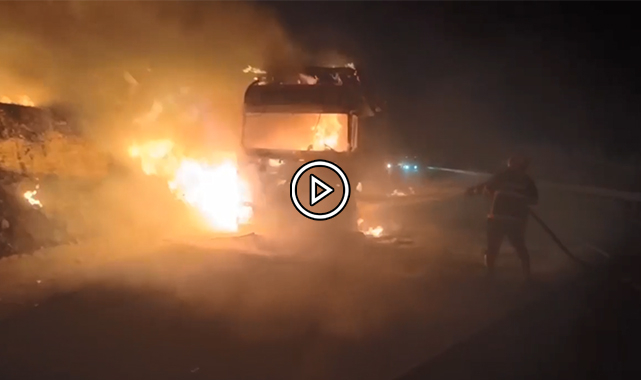 İtfaiye ekibinin 4 araç 12 personelle müdahale ederek söndürdüğü yangında, tır kullanılamaz hale geldi.