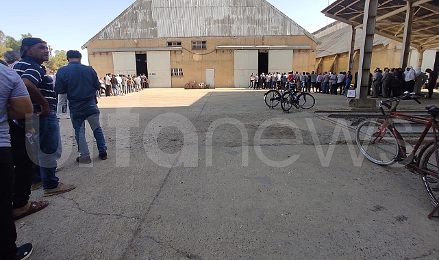 Kimi bisikleti ile geldi TMO’nun önüne, kimi ise el arabasıyla. TMO önündeki kuyruk metrelerce uzadı.