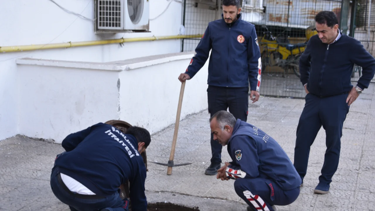 Olay yerine gelen itfaiye ekipleri, sesin geldiği yeri tespit ederek borunun geçtiği yerleri kazdı.