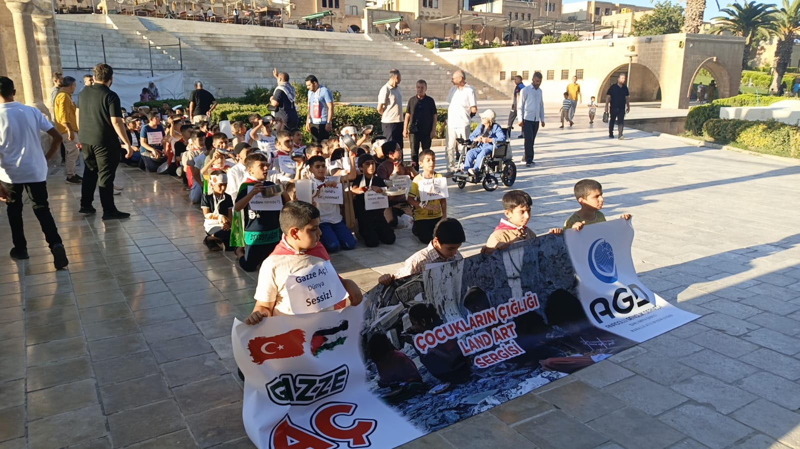 Şanlıurfa’dan Gazze çocuklarına destek amacıyla “Çığlık”, ressam Muharrem Çelik’in öncülüğünde düzenlenen lantart çalışması Balıklıgöl Platosu’nda gerçekleştirildi. Etkinlikte, Gazze’deki çocukların yaşadığı açlık dramı sahnelendi.