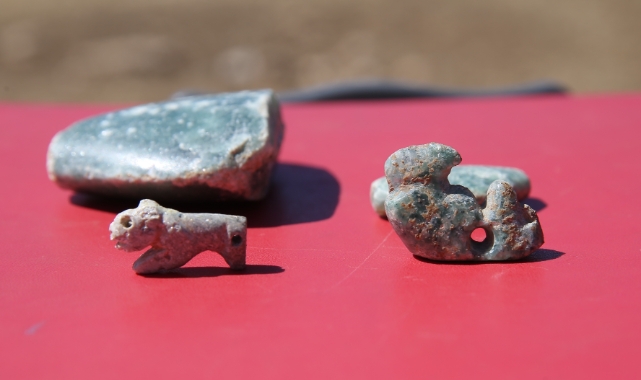 Geçmiş yıllardaki kazılarda aralarında yılan biçiminde olanların da yer aldığı çeşitli tiplerde, farklı ham maddelerden üretilmiş boncukların (manevi değeri yüksek obje) görüldüğünü ancak bu yıl ilk kez leopar ile insan ve akbaba şekilli süs eşyasını bulduklarını belirten Güldoğan, şöyle konuştu: