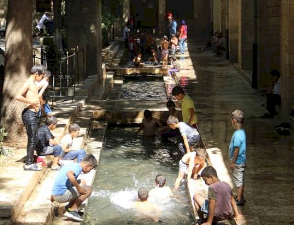 Çocuklar ise tehlikeye aldırış etmeden süs havuzlarında serinledi.