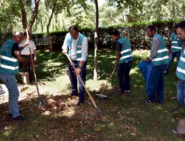 Şanlıurfa'nın Siverek ilçesinde Denetimli serbestlik hükümlüleri temiz bir çevre için sabahın erken saatlerinde tırmık , kürek ve süpürgelerle toprak alanın temizliğini yaptılar.