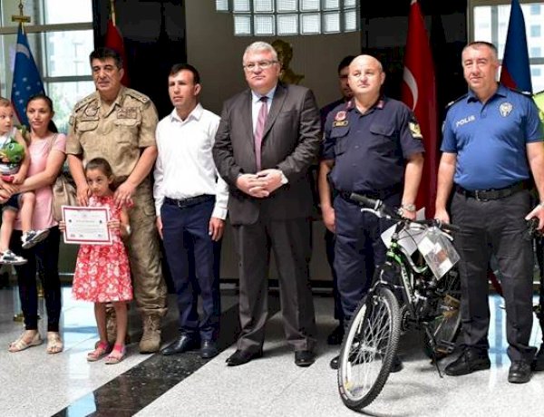 İçişleri Bakanlığı’nın tüm ülkede hayata geçirdiği “Dikkat sizden notlar bizden” projesi kapsamında sosyal medyada düzenlenen yarışmaya katılarak en çok beğeni kazanan Şanlıurfalı çocuklar Muhammet Ensar Beyazkendir ve Zeynep Ada Özavcı’ya bisiklet ödülleri Şanlıurfa Valiliğinde düzenlenen törenle verildi.