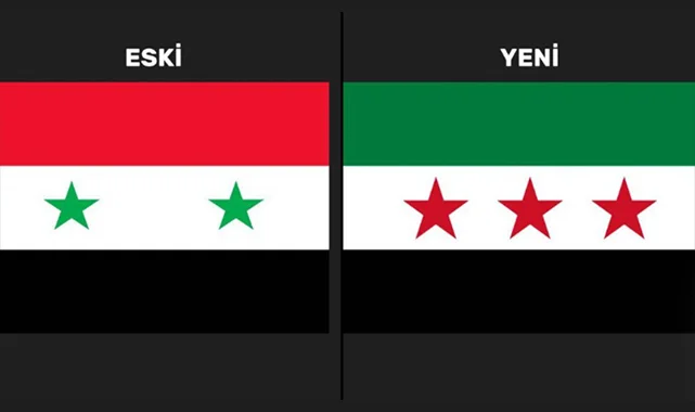 Yeşil, beyaz, siyah şeritler üzerine dizili 3 kırmızı yıldızın olduğu bayrak Esed sonrası Suriye'yi simgeleyen yeni bayrak oldu.