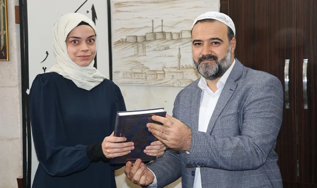 Dergah Camisi imam hatibi İbrahim Onat, Müslüman olan kadına Kur'an-ı Kerim hediye etti.