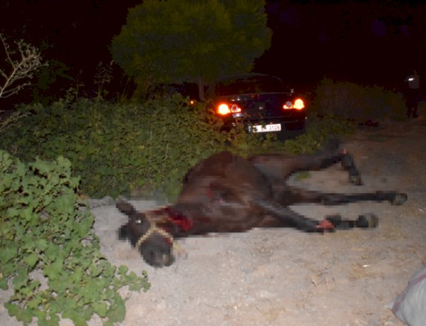 Burada hızla ilerleyen araçların arasına dalan atlara çarpan 2 araçta büyük çapta maddi hasar oluşurken, 6 kişi yaralandı. Taylardan 4'ü ise telef oldu.